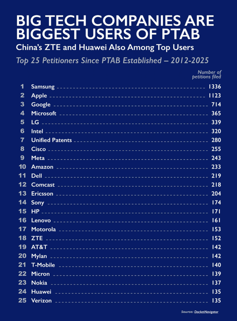 Infographic: Big Tech Companies Are Biggest Users of PTAB, 2012-2025